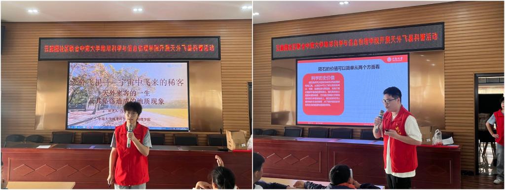 科普宣讲团赴湖南省长沙市岳麓区云麓园社区党群服务中心,为社区的30名中小学生带来了一场以“天外飞星”为主题的科普宣讲活动,旨在引领青少年深入探寻神秘的陨石世界,激发他们对天文科学的热爱与探索精神。